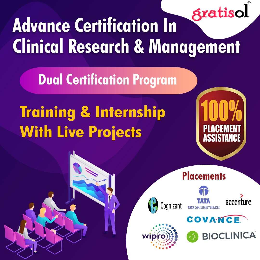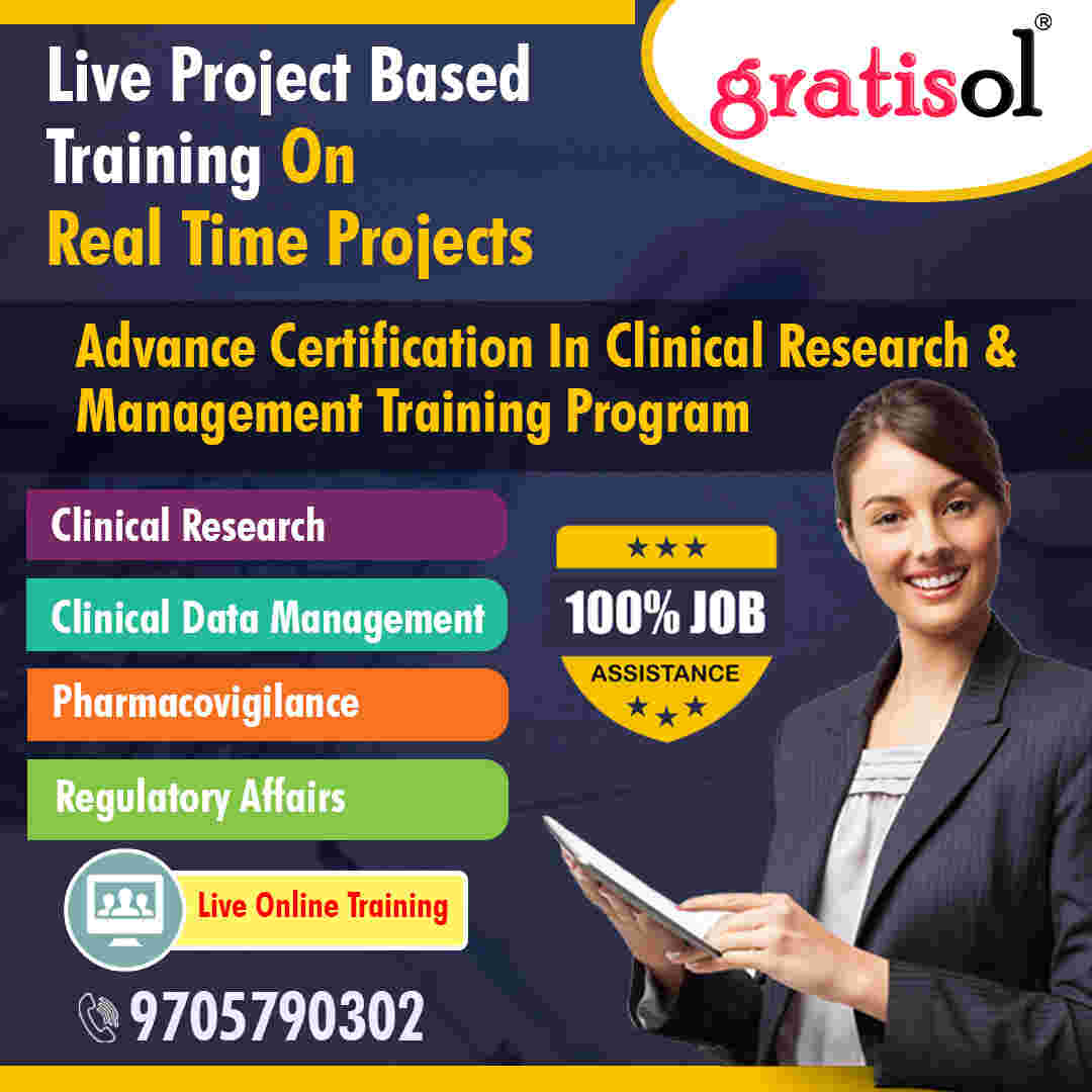 Gratisol Labs is aleading Clinical Research Institute Offering Clinical ResearchCourse,Pharmacovigilance Course,Clinical data Management Course,SASCourse,Medical Writing Course and Regulatory Affairs Course.. We offer ClinicalResearch Training progra...