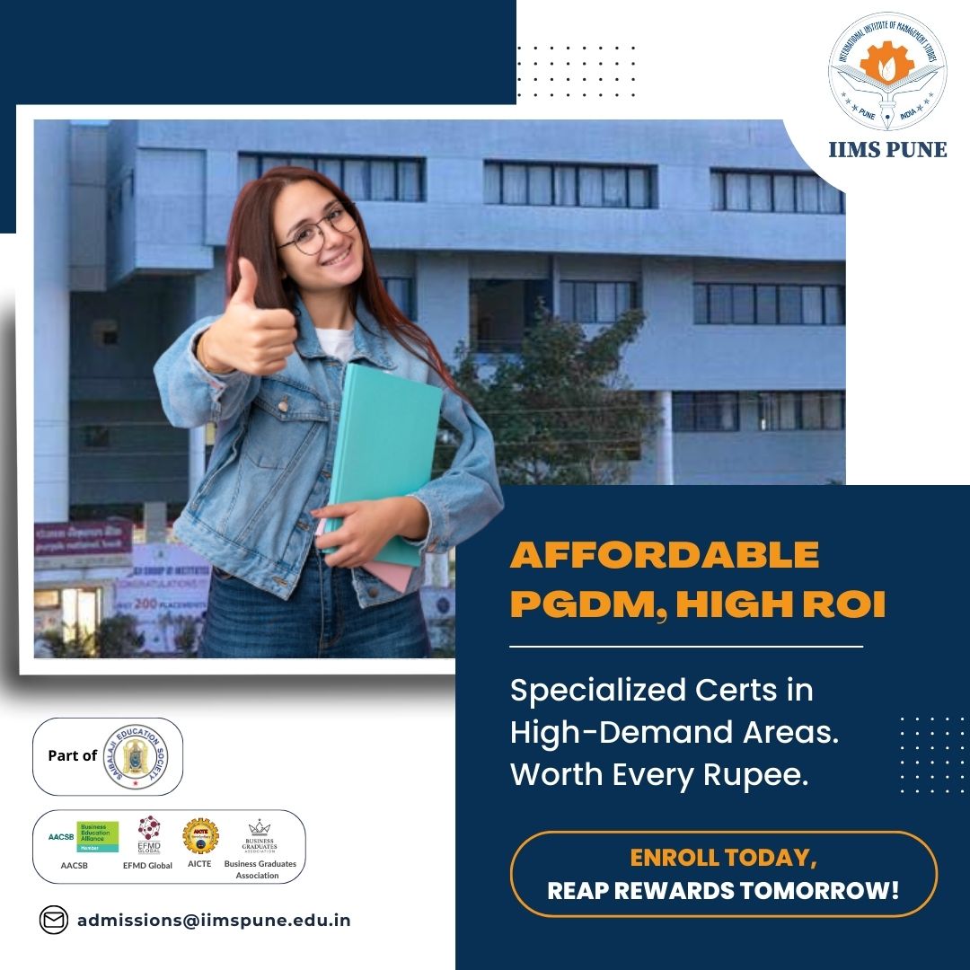 Discover an affordable PGDM program with a high ROI at IIMS Pune. We offer specialized certifications in high-demand areas like Digital Marketing and Six Sigma. Our PGDM program is designed to give you a competitive edge in the job market, making your investment worth every rupee. Enroll today to reap the rewards tomorrow and set yourself on a path to success Visit us https://www.iimspune.edu.in/admission/fee-structure Contact us-020-66547500