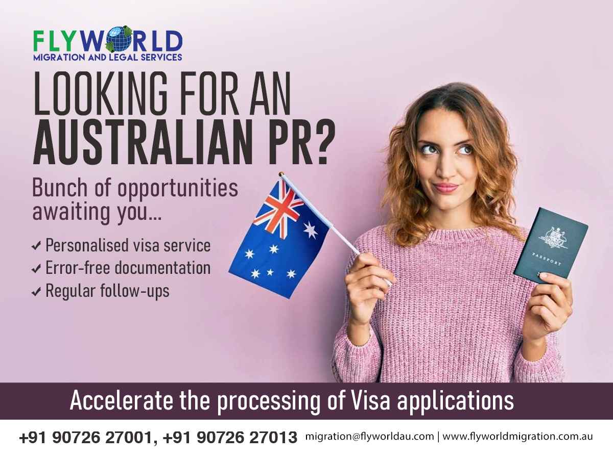 FlyworldMigration & Legal Services, is the best Australia PR visa consultants in Kerala, with bases in Australia, Dubai, and the UK. We provide endlessoptions to all sorts of individuals like engineers, IT professionals, businessowners, nurses & all skilled labours who seek to establish a family inAustralia.