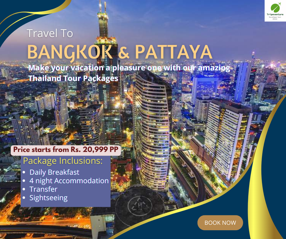 Contact Tripoventure at+91-7478325580/7699685748 or email us at enq@tripoventure.com. Don't miss thechance to explore the verdant beauty of Bangkok and Pattaya with us! Let uscurate memories that last a lifetime!