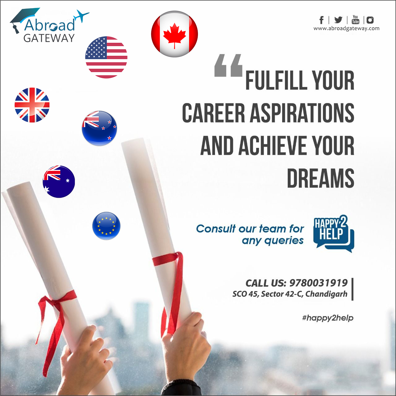 Abroad Gateway makes studying abroad a reality. Our Chandigarh-based study visa consultants are experts at simplifying the visa process. Don’t wait; take the first step towards your international education journey. Visit Abroad Gateway branch: SCO 45...