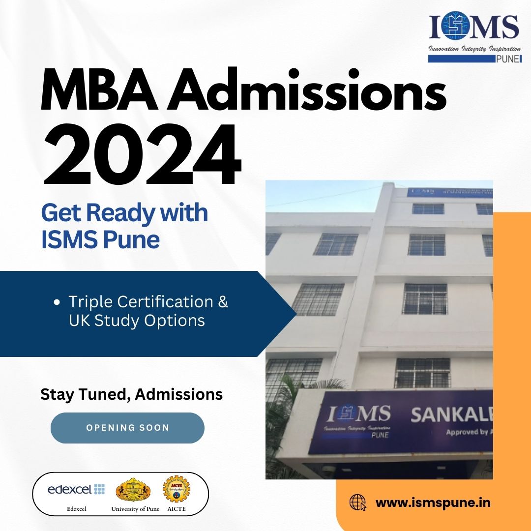 Gear up for MBA Admissions 2024 at ISMS Pune. We offer triple certification and the unique option to progress to the UK for a second MBA degree. Our Employability Skills Development Program includes training sessions, workshops, and certification pro...