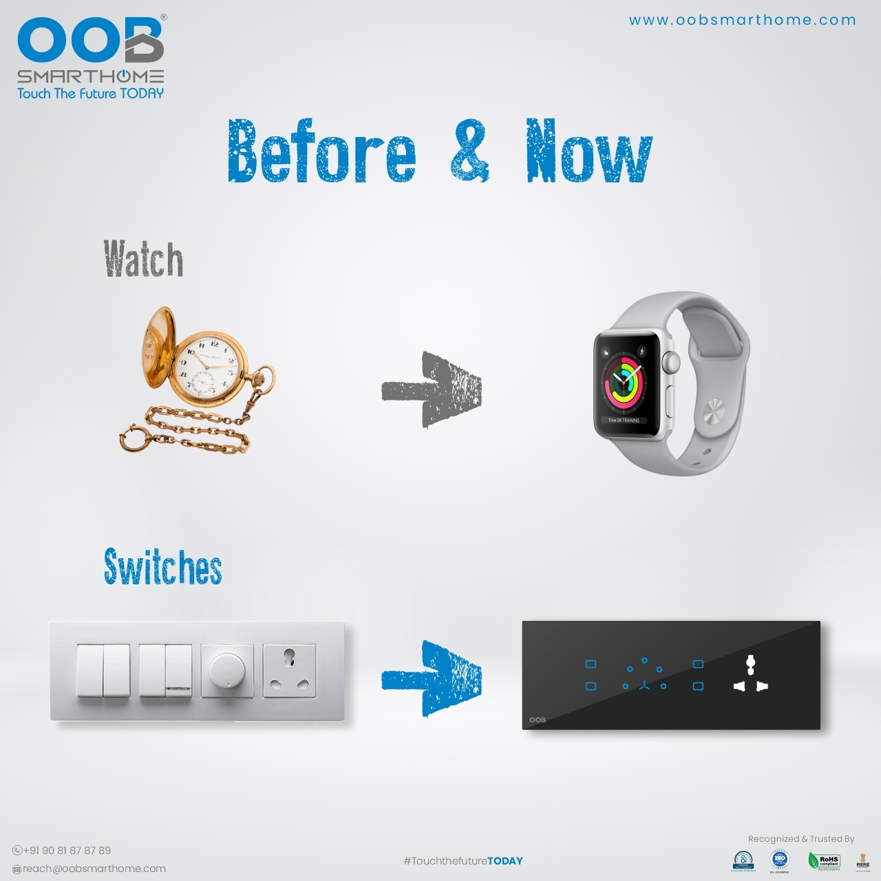 OOB Smarthome – Before & Now #smarthome #oobsmarthome . . for quick inquiry call on: +91 9081 8787 89 . . #smartwatch #pocketwatch #connectedhome #watch #innovation #luxuryhomes #smarthomesystem #homeautomation #touchswitch #TouchSwitches #Designer...