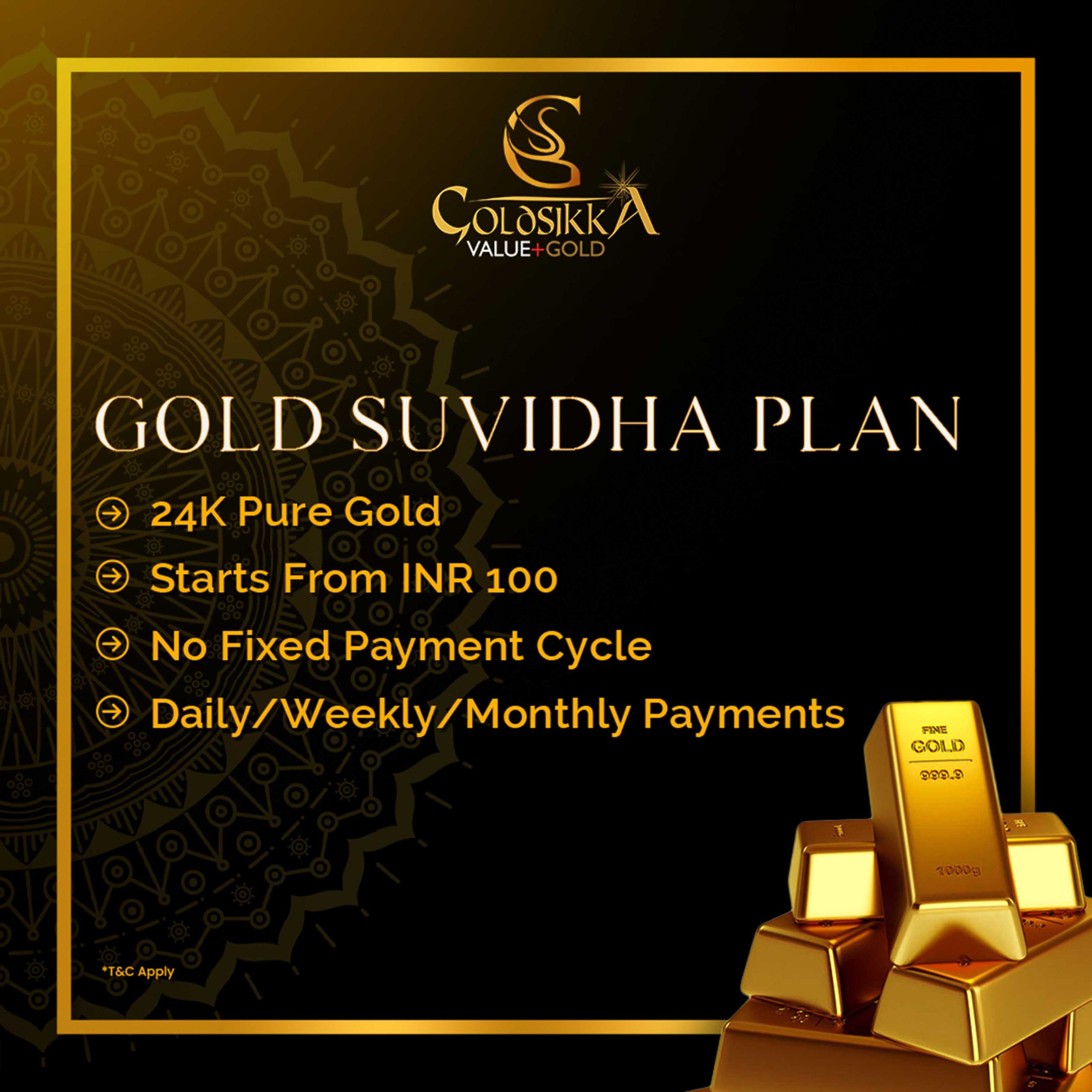 Secure your financial future with Gold Suvidha's top gold scheme. As one of the prominent gold bullion dealers in Hyderabad, Gold Suvidha offers a secure and hassle-free gold saving plan starts from Rs.100. Embrace the brilliance of gold ownership and set a course towards financial security. Discover the worth of saving gold with Gold Suvidha's exceptional scheme.