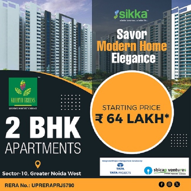 Sikka Kaamya Greens project is giving to opportunity to change your life style with 2bhk apartment in Sector 10, Greater Noida West by offering 2BHK dream home apartments only at rupees 64 Lakhs*. Buy this 2BHK residential size space from 890 to 21...