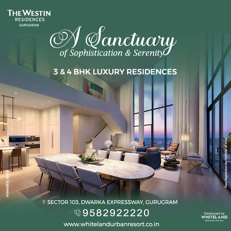 The Westin Residences is a premium residential project being developed by Whiteland Corporation in collaboration with Marriott International right on Dwarka Expressway in sector 103 of Gurgaon. This super luxurious project boasts of being the first-ever branded residence under the umbrella of the Westin brand.The Westin Residences 103 Gurgaon offers a chance to live a modern, contemporary lifestyle that blends elegance, comfort, and convenience with exceptional connectivity. Since the residences are nestled in a prime strategic location, it ensures ease of access to all major financial and business hubs, educational institutions, healthcare facilities, and shopping places.The ultra luxury project in Gurgaon offers high-rise spacious 3BHK and 4BHK residential units spread across a land parcel of 21 acres.
