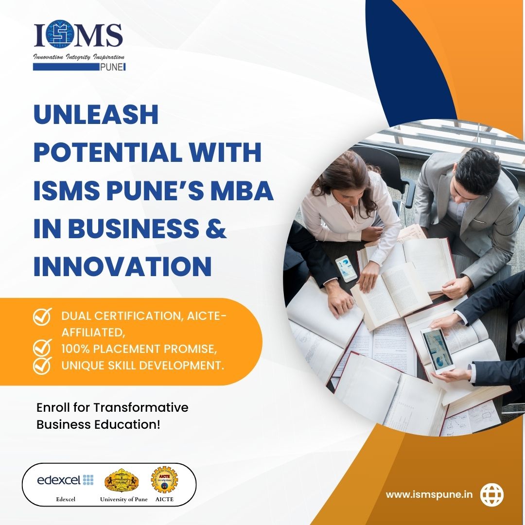 Join ISMS Pune, operational since 2009, for an MBA that stands out in Pune. Experience our unique dual certification MBA in Business & Innovation, under Savitribai Phule Pune University and AICTE affiliation. Benefit from our practical approach with case studies, workshops, and a 100% placement promise. Affordable fees for a transformative degree. Contact us- 8796151515 / 7350151515 Visit us-https://ismspune.in/courses